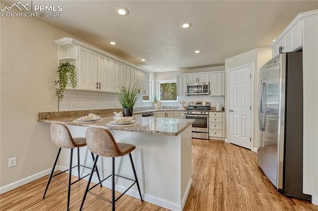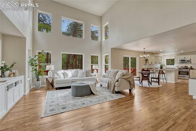 Don't forget to look at the virtual walk through of this fabulous property. Set on 2.5 wooded acres, the drive in feels quiet and removed, but you’re still only minutes from Highway 83, Monument, and north Colorado Springs. Inside, the wall of windows and soaring ceilings keep the main living space connected to the trees. Natural light fills the living room, and every room across the back of the house looks out into the pines. The kitchen was designed for the way people actually live. There’s room for everyone to gather around the peninsula, enough storage to keep the counters clear, and a built-in desk area that works for homework, working from home, or keeping life organized without taking over the dining table. Doors open straight to the deck, so it’s easy to start the day with a cup of coffee or end it with a glass of wine under the trees. The main-level primary suite gives owners privacy from the rest of the house, and the attached spa-like bathroom is one of the standout spaces in the home. A freestanding tub sits in front of the picture window, bringing the peace and serenity of the outdoors in. The oversized shower gives you room to spread out, and the large walk-in closet makes the suite feel more like a private retreat than just another bedroom. Upstairs, the extra bedrooms and office create flexibility for guests, work, or hobbies. Downstairs, the walkout basement becomes its own separate living space with the gas fireplace, wet bar, and two additional bedrooms, giving everyone room to spread out without feeling disconnected. Outside, a fenced section of the yard creates a more comfortable everyday outdoor space close to the house while still enjoying the privacy and space that living in the trees of Black Forest provides.
